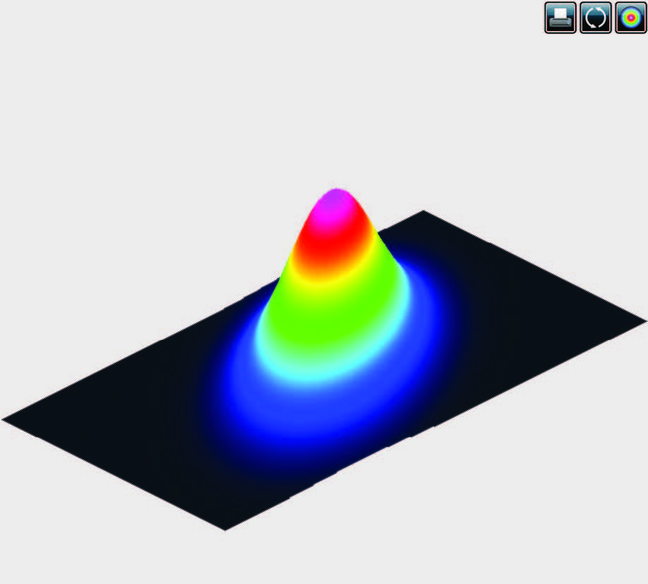 三維顯示屏 —— 三維顯示屏可顯示光束的實(shí)際形狀,可輕松對(duì)圖像進(jìn)行縮放、移動(dòng)和旋轉(zhuǎn)。重置按鈕非常有用,可允許用戶將數(shù)據(jù)返回原始配置。此顯示屏還帶有一個(gè)可以 BMP 格式保存最后圖像的打印屏幕按鈕。