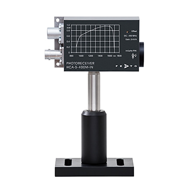 HCA-S-400M 光接收器系列將快速光電二極管與久經(jīng)考驗的FEMTO HCA 電流放大器技術(shù)相結(jié)合。HCA-S-400M 可配備快速硅或 InGaAs 光電二極管,分別覆蓋 320 至 1000 nm 和 900 至 1700 nm 的光譜范圍。放大器跨阻抗為 5 x 103 V/A,導(dǎo)致InGaAs 模型在 1550 nm 時的最大轉(zhuǎn)換增益為 4.8 x 103 V/W,而 InGaAs 模型為 2.7 x 103帶有硅光電二極管的模型在 800 nm 時的 V/W。復(fù)雜的直流耦合多級放大器設(shè)計允許測量從直流到 400 MHz 的帶寬,對應(yīng)于 1 ns 的最小上升時間。由于采用低噪聲設(shè)計,無需進一步平均即可檢測到光功率在微瓦范圍內(nèi)的信號。提供具有自由空間或光纖輸入的不同型號。
