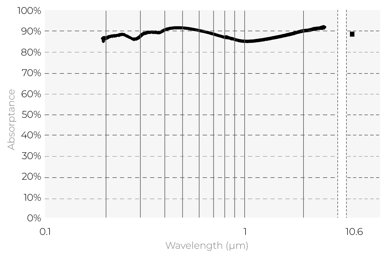 我們的 H 型吸收器具有寬帶和光譜平坦的光譜響應(yīng),因此該功率檢測(cè)器是一種多功能解決方案,可滿足大多數(shù)激光功率測(cè)量需求。我們的制造方法還使這種吸收器在平均功率密度和能量密度方面具有良好的損壞閾值。它的吸收能力很強(qiáng),因此產(chǎn)生的背部反射比例相對(duì)較低。