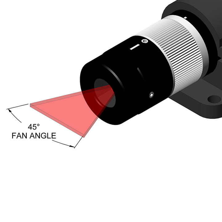 Laser Beam Shape is a Tophat Uniform Line with 45° Fan Angle