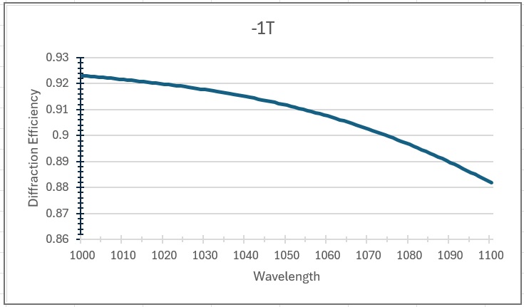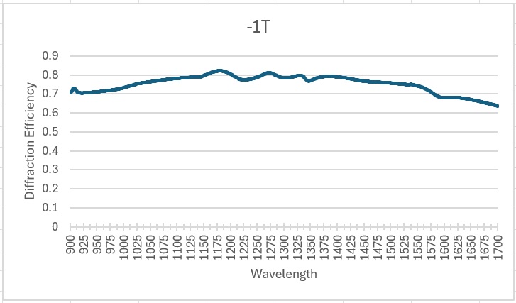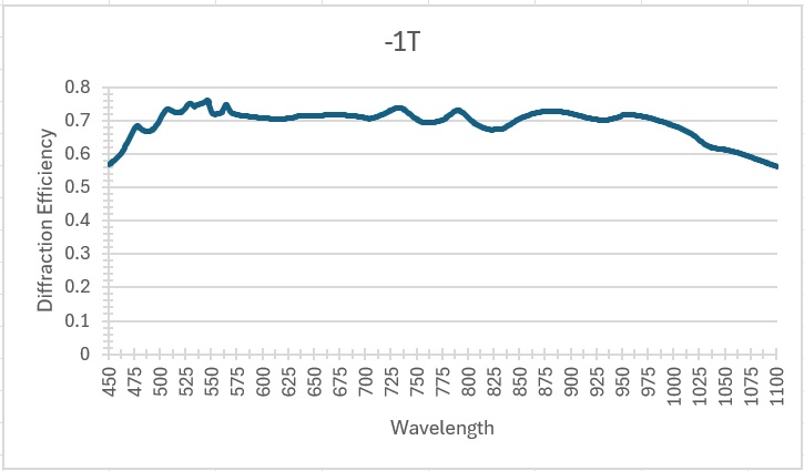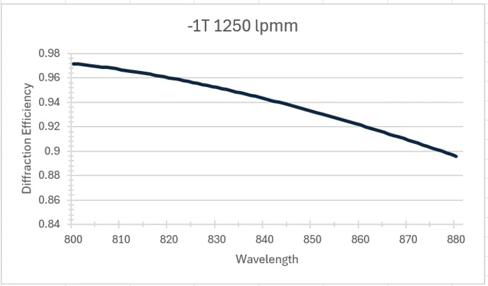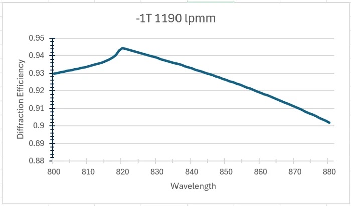 See our specifications table for some typical diffraction efficiency curves optimized across wavelengths. The grating profiles can be modulated to optimize diffraction efficiency at certain wavelengths.